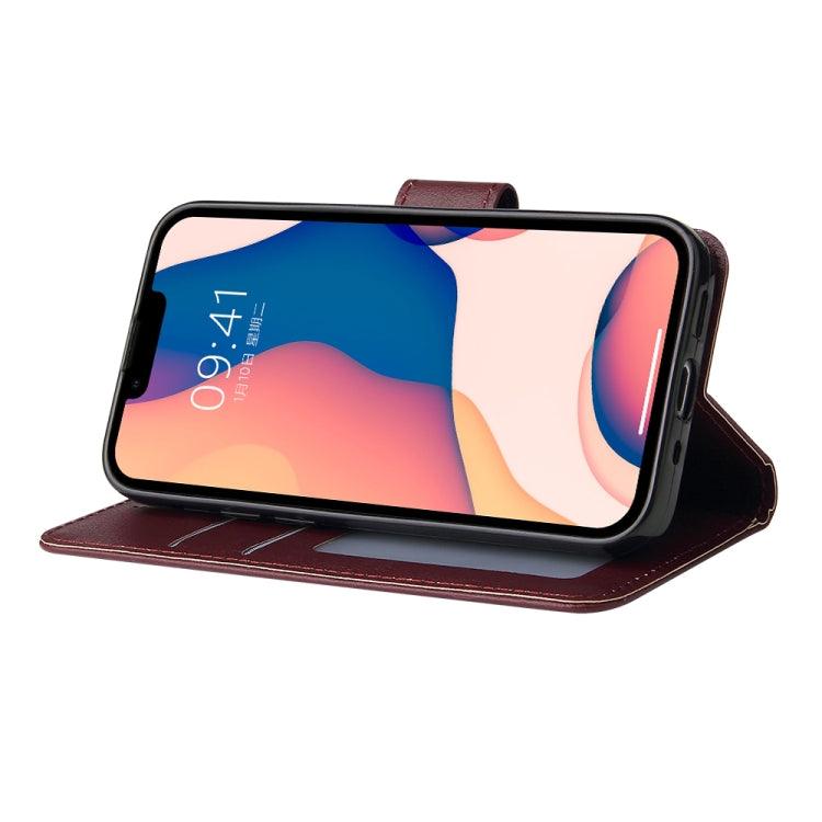 Apple iPhone 14 Plus Multifunctional Horizontal Flip Leather Case Cover with Three Card Slot (Red Wine)