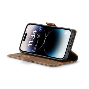 Apple iPhone 14 Pro Case CoverMe 023 Butterfly Buckle Litchi Texture RFID Anti-theft Leather Phone Case Cover (Brown)