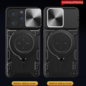 Apple iPhone 14 Pro CD Texture Sliding Camshield Magnetic Holder Phone Case Cover (Black)