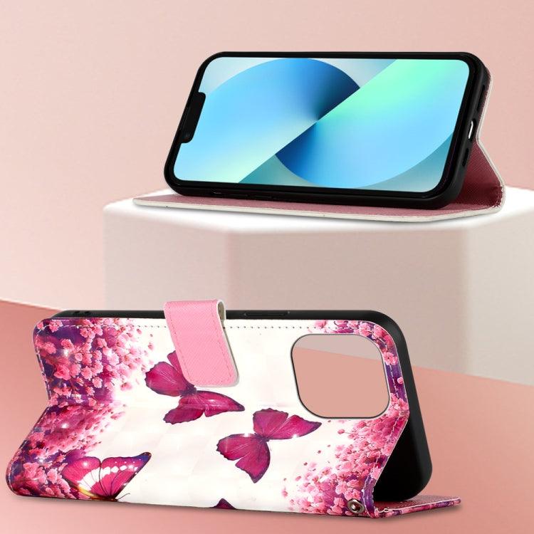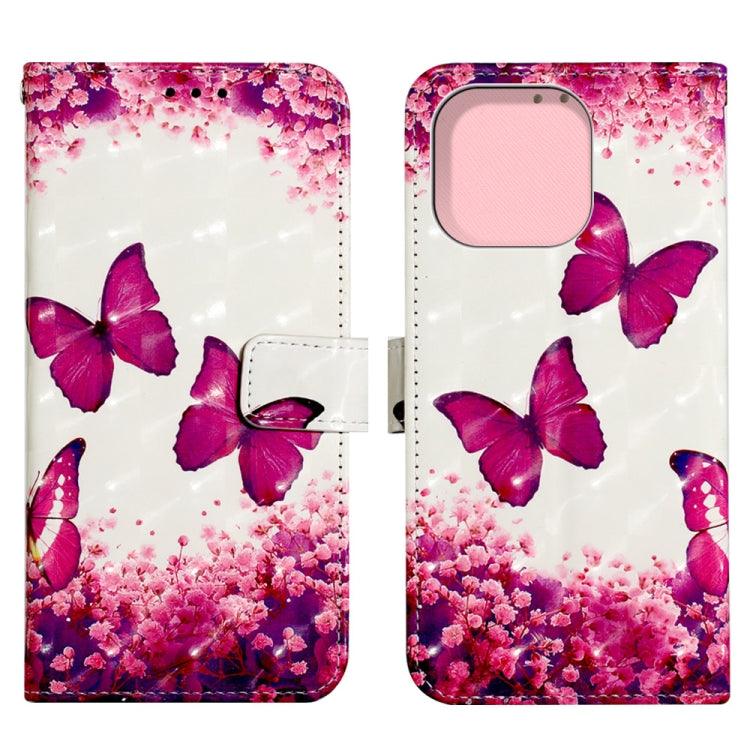 Apple iPhone 14 Pro Max 3D Painting Horizontal Flip Leather Phone Case Cover (Rose Butterfly)