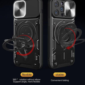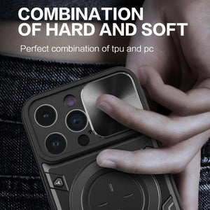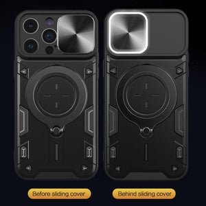 Apple iPhone 14 Pro Max CD Texture Sliding Camshield Magnetic Holder Phone Case Cover (Pink)