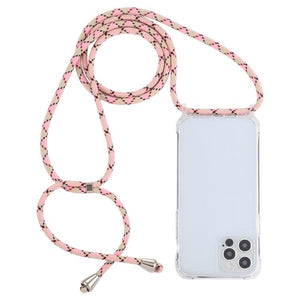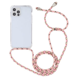 Apple iPhone 14 Pro Max Transparent Acrylic Airbag Shockproof Phone Protective Case Cover with Lanyard (Pink Apricot Coffee)