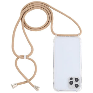 Apple iPhone 14 Pro Transparent Acrylic Airbag Shockproof Phone Protective Case Cover with Lanyard (Camel)