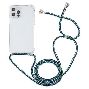 Apple iPhone 14 Pro Transparent Acrylic Airbag Shockproof Phone Protective Case Cover with Lanyard (Green White Blue)