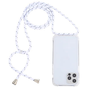 Apple iPhone 14 Pro Transparent Acrylic Airbag Shockproof Phone Protective Case Cover with Lanyard (White Grey Rough Grain)