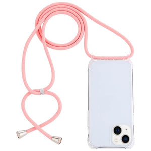 Apple iPhone 14 Transparent Acrylic Airbag Shockproof Phone Protective Case Cover with Lanyard (Pink)