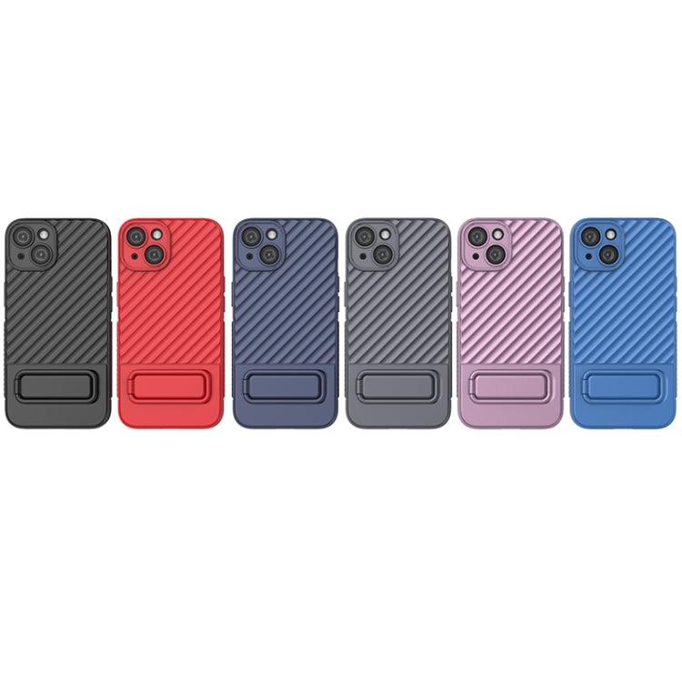Apple iPhone 14 Wavy Texture TPU Phone Case Cover with Lens Film (Purple)