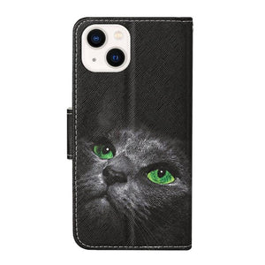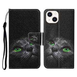 Apple iPhone 15 3D Colored Drawing Flip Leather Phone Case Cover (Black Cat)