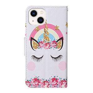 Apple iPhone 15 3D Colored Drawing Flip Leather Phone Case Cover (Crown Unicorn)