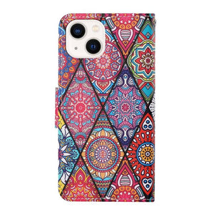 Apple iPhone 15 3D Colored Drawing Flip Leather Phone Case Cover (Rhombus Totem)