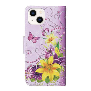 Apple iPhone 15 3D Colored Drawing Flip Leather Phone Case Cover (Yellow Flowers)