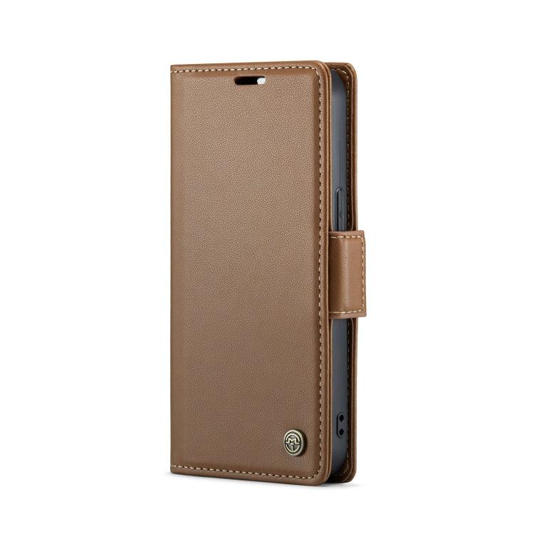 Apple iPhone 15 Case CoverMe 023 Butterfly Buckle Litchi Texture RFID Anti-theft Leather Phone Case Cover (Brown)