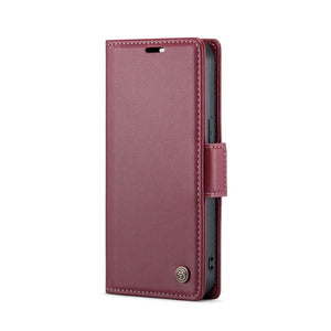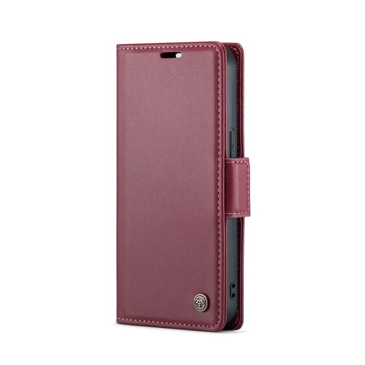 Apple iPhone 15 Case CoverMe 023 Butterfly Buckle Litchi Texture RFID Anti-theft Leather Phone Case Cover (Wine Red)