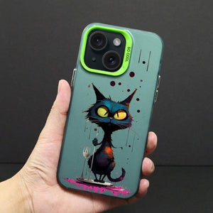 Apple iPhone 15 Color Ink Frosted PC+TPU Phone Case Cover (Black Cat)