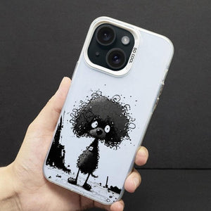 Apple iPhone 15 Color Ink Frosted PC+TPU Phone Case Cover (Curl Teddy)