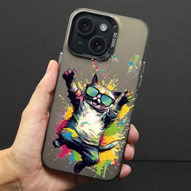 Apple iPhone 15 Color Ink Frosted PC+TPU Phone Case Cover (Glasses Cat)