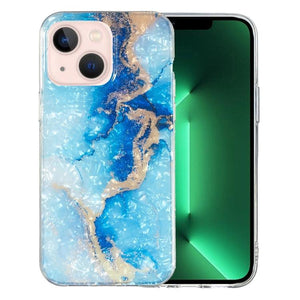 Apple iPhone 15 IMD Shell Pattern TPU Phone Case Cover (Blue Gold Marble)