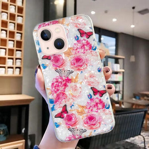 Apple iPhone 15 IMD Shell Pattern TPU Phone Case Cover (Butterfly Flower)
