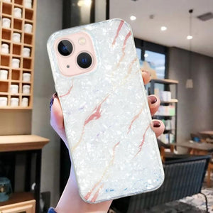 Apple iPhone 15 IMD Shell Pattern TPU Phone Case Cover (White Marble)