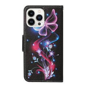 Apple iPhone 15 Pro 3D Colored Drawing Flip Leather Phone Case Cover (Fluorescent Butterfly)