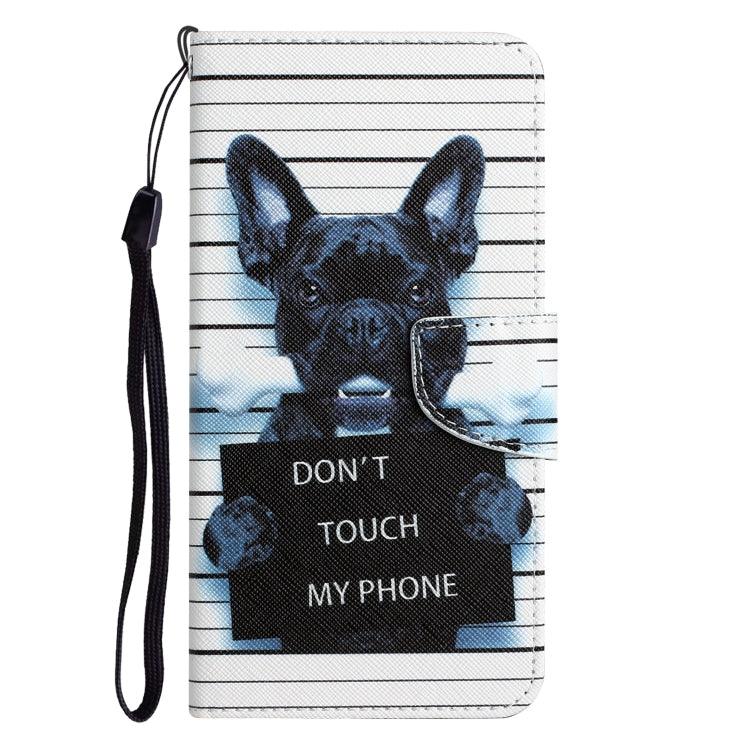 Apple iPhone 15 Pro Colored Drawing Leather Phone Case Cover (Black Dog)