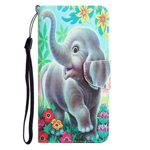 Apple iPhone 15 Pro Colored Drawing Leather Phone Case Cover (Elephant)