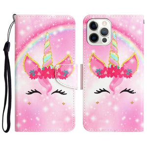 Apple iPhone 15 Pro Colored Drawing Leather Phone Case Cover (Unicorn)