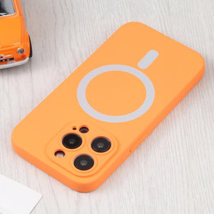 Apple iPhone 15 Pro Max Liquid Silicone Magsafe Phone Case Cover (Orange)