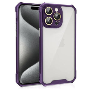 Apple iPhone 15 Pro Shockproof Acrylic Phone Case Cover with Lens Glass Film (Purple)