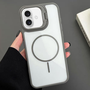 Protect your Apple iPhone 16 Plus with this sleek and durable PC Lens Holder MagSafe Magnetic Phone Case Cover. Designed to offer superior protection while maintaining the aesthetics of your device, this case cover features a built-in MagSafe magnetic ring for easy attachment of MagSafe accessories. The PC material ensures a robust shield against scratches, bumps, and drops. The lens holder feature adds extra protection for your phone's camera, ensuring it stays pristine. The elegant grey color complements your phone while providing a modern and sophisticated look.