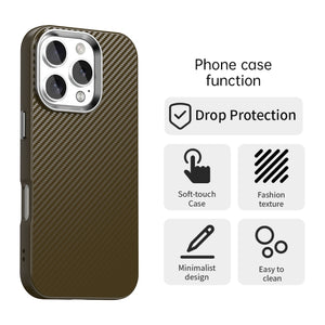 Enhance the protection and style of your Apple iPhone 16 Pro Max with our Carbon Fiber Series IMD Phone Case Cover. Crafted with precision and elegance, this brown case offers a sleek and modern look while ensuring your device remains safe from everyday wear and tear. The IMD (In-Mold Decoration) technology provides durable and vibrant color that won't fade over time.