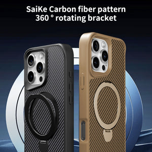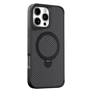 Apple iPhone 16 Pro Max Carbon Fiber Texture 360 MagSafe Holder Phone Case - Black