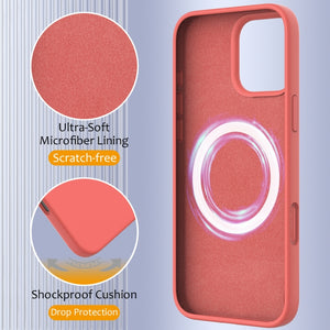 Apple iPhone 16 Pro Max Shockproof Silicone Magsafe Phone Case Cover (Pink Orange)