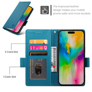 Apple iPhone 16 Pro Max Side Buckle Magnetic Frosted Leather Phone Case Cover (Blue)