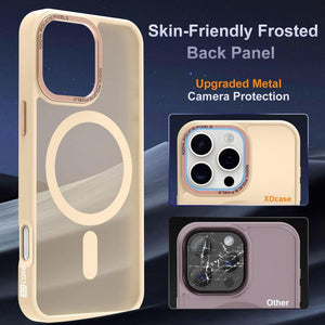 Apple iPhone 16 Pro Max XDCase Cover Metal Lens Frame Skin Feel Magnetic Phone Case Cover - Gold