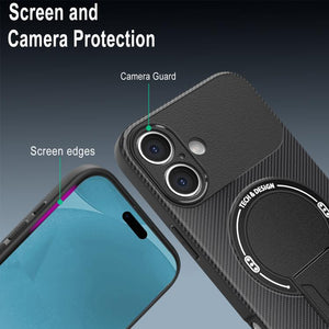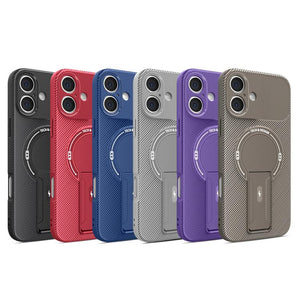Protect your Apple iPhone 17 with this sleek and durable MagSafe phone case. Designed with a carbon fiber texture, this case not only provides a sophisticated look but also offers robust protection against everyday wear and tear. The integrated holder allows for a convenient viewing experience, making it a versatile accessory for your phone.