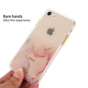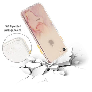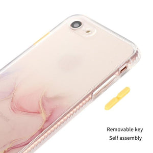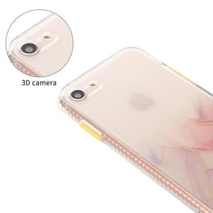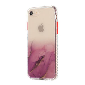 Apple iPhone SE 2020, 2022 / 8 / 7 Marble Pattern Glittery Powder Shockproof TPU Case Cover with Detachable Buttons (Purple)