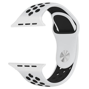 Enhance your Apple Watch experience with this stylish and durable two-color silicone sports band. Designed to fit a variety of Apple Watch sizes, this band is perfect for those who lead an active lifestyle.