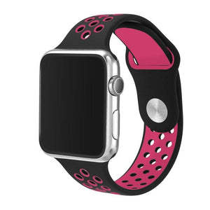 Apple Watch Series 9, 8, 7, 6, SE, 41mm, 40MM, 38mm Fashionable Classical Silicone Sport Watchband (Black Rose Red)