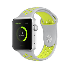 Apple Watch Series 9, 8, 7, 6, SE, 41mm, 40MM, 38mm Fashionable Classical Silicone Sport Watchband (Grey Yellow)