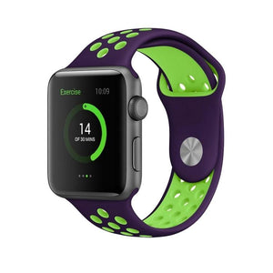 Apple Watch Series 9, 8, 7, 6, SE, 41mm, 40MM, 38mm Fashionable Classical Silicone Sport Watchband (Purple Green)