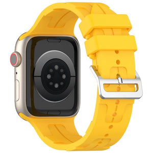 Apple Watch Series 9, 8, 7, 6, SE, 41mm, 40MM, 38mm H Texture Silicone Ladder Buckle Watch Band (Yellow)
