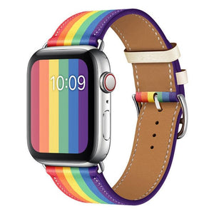 Apple Watch Series 8 & 7 45mm / 6 & SE & 5 & 4 44mm / 3 & 2 & 1 42mm Rainbow Leather Watch Band (Black)