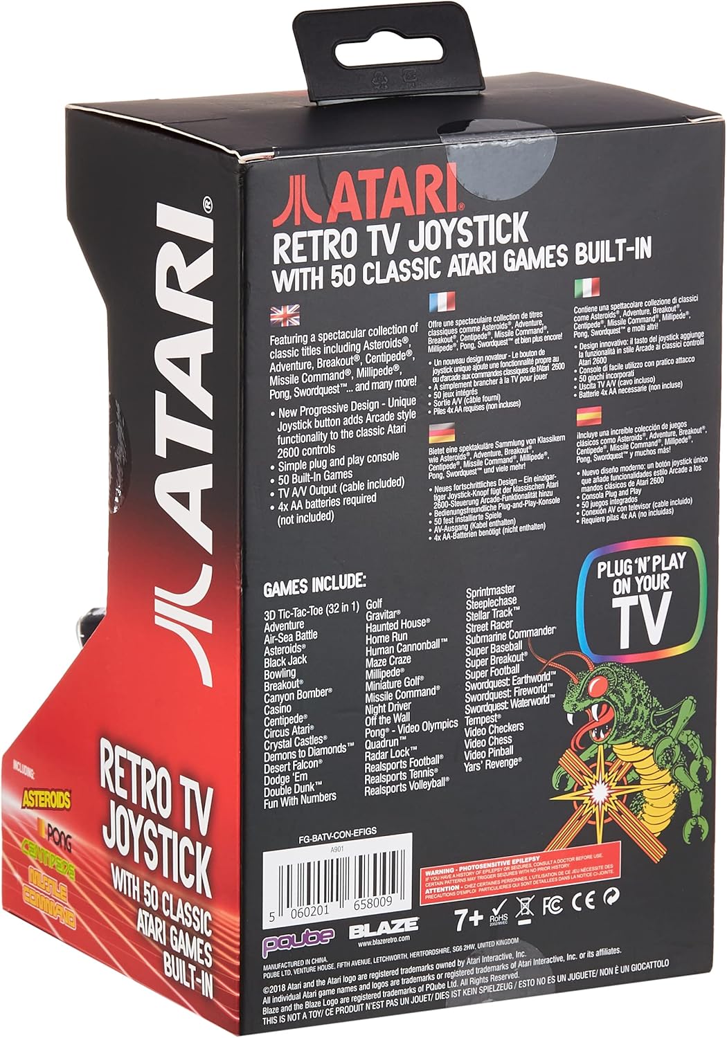 This new progressive design with unique "button on top" function combines the classic Atari 2600 design with classic Arcade design!:50 Built-In Games:Simple plug and play console:A/V Output (cable included):Progressive controller design with an additional button on top!