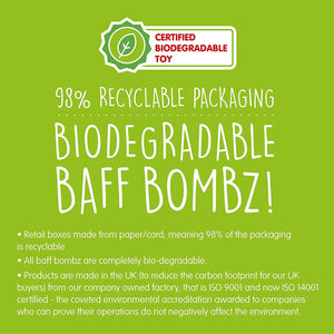 Make bath time fun time with Baff Bombz by creating a colourful, fizzing bath time adventure.