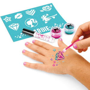• BODY ART – Create cool body art with the 4 sheets of Barbie tattoos included. Or why not create some sparkling glitter tattoos using the templates, body glue and colourful glitters!
