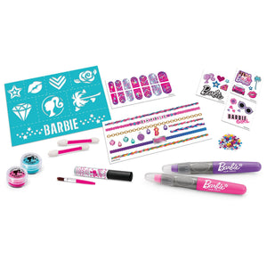 • BARBIE 3 IN 1 ULTIMATE GLITTER BEAUTY SET Get ready to shine with the Barbie 3 in 1 Ultimate Glitter beauty set! Create personalised looks for nails, body and hair! Create your own sparkling style. Perfect for parties or fun with friends!