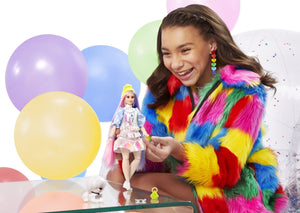 The Barbie® Extra dolls blend bright colours with trendy fashions, making big statements! Each Barbie® doll rocks a unique playful style, and each doll toy comes with an adorable pet toy, full of personality! Kids aged 3+ can explore self-expression through fashion and style, and poseable Barbie® doll toys offer plenty of exciting play experiences, full of glitter, emojis and stand-out hair! EXTRA vibes all round! Each doll toy sold separately, subject to availability. Doll cannot stand alone. Colours and decorations may vary.