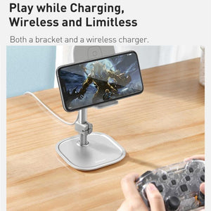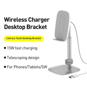 Baseus Literary Youth Telescopic Desktop Bracket Holder Wireless Charger for Phone & Tablet (Silver)