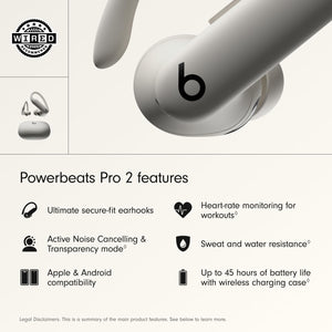Beats Powerbeats Pro 2 Quick Sand, Wireless Bluetooth Earbuds, Noise Cancelling, Heart-Rate Monitor, IPX4, Up to 45 Hours Battery & Wireless Charging Case, works with Apple & Android